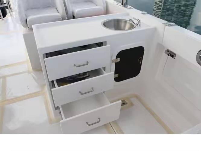 It was initially designed as a private use vessel and is suitable for short term outings, making it popular for offshore fishing expeditions for up to 8 people.