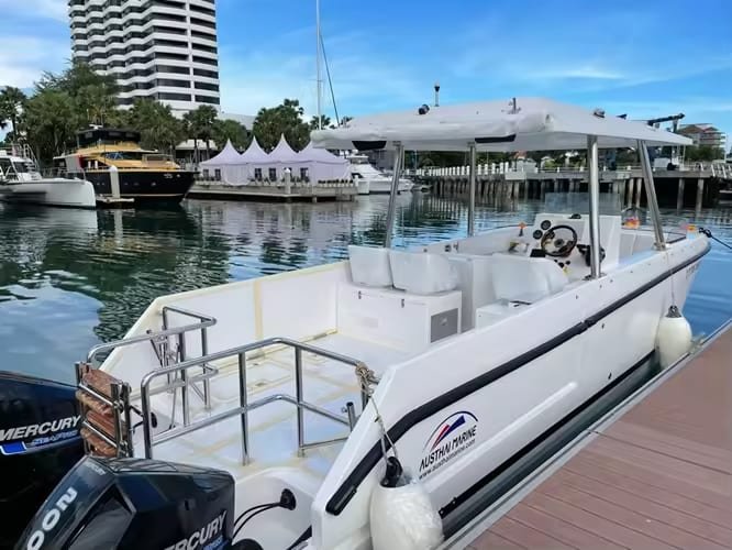 Its unique hull design from Albatross Marine offers speed, stability, comfort, seaworthiness, economy and space to a level not normally available in boats of this size.
