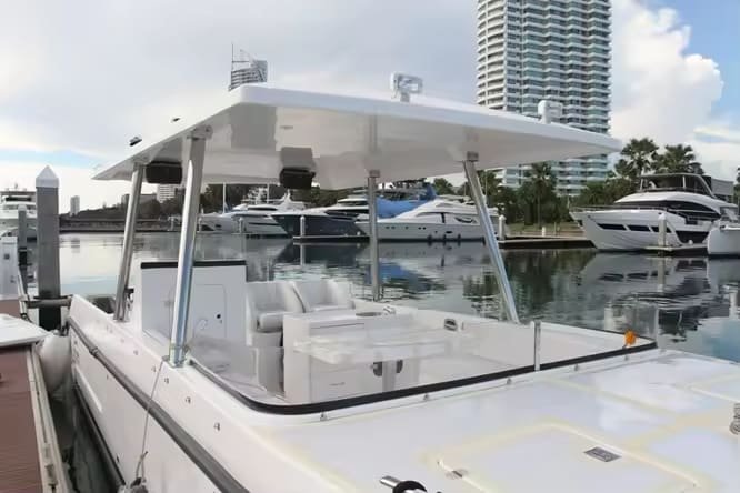 Fun Cat, a bow rider style side console model perfect for family day trip