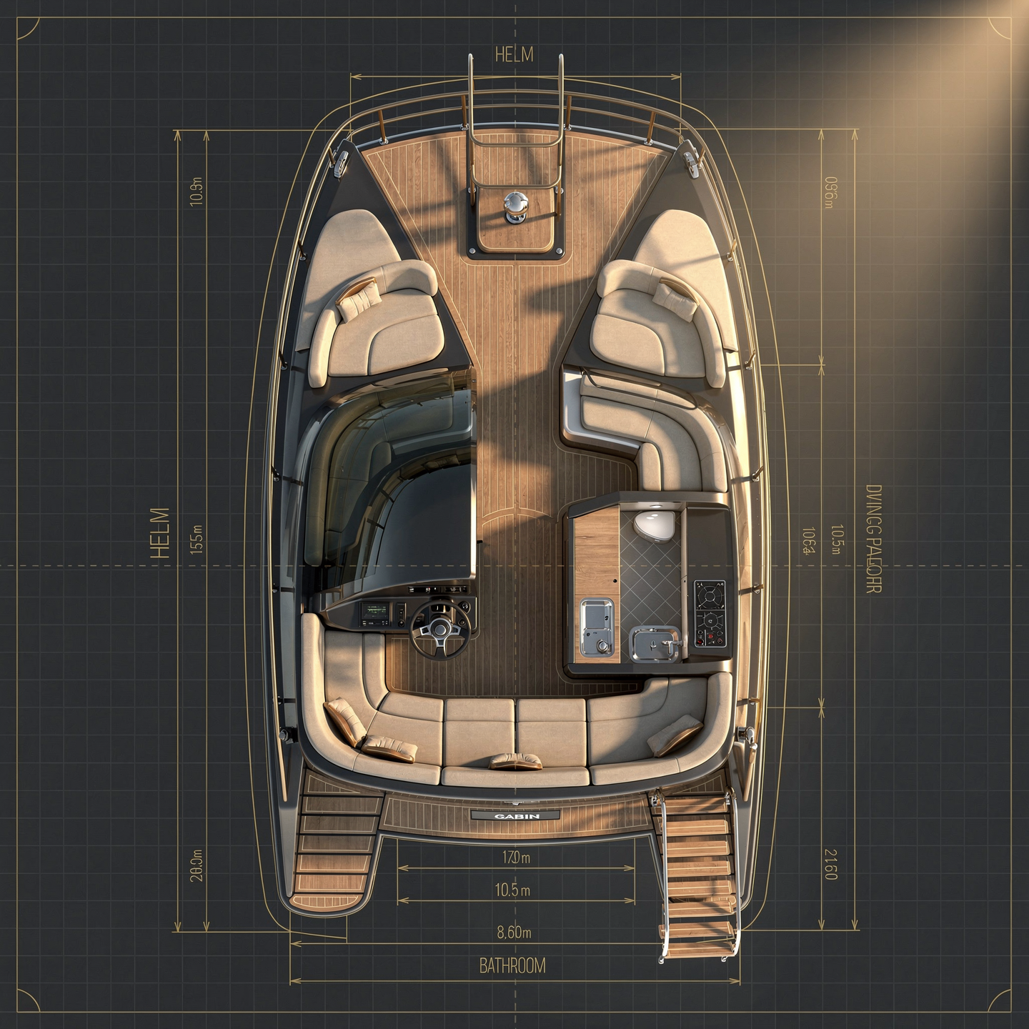 This basic interior does not include luxury finishes, cabinetry, galley facilities, toilet compartment, air conditioning, or premium electronics. These items are available as optional upgrades detailed in the following sections. Standard Equipment Package:1.0 Vessel Summary & Base SpecificationsBased on your “Product Basic Information,” we propose the following core configuration: