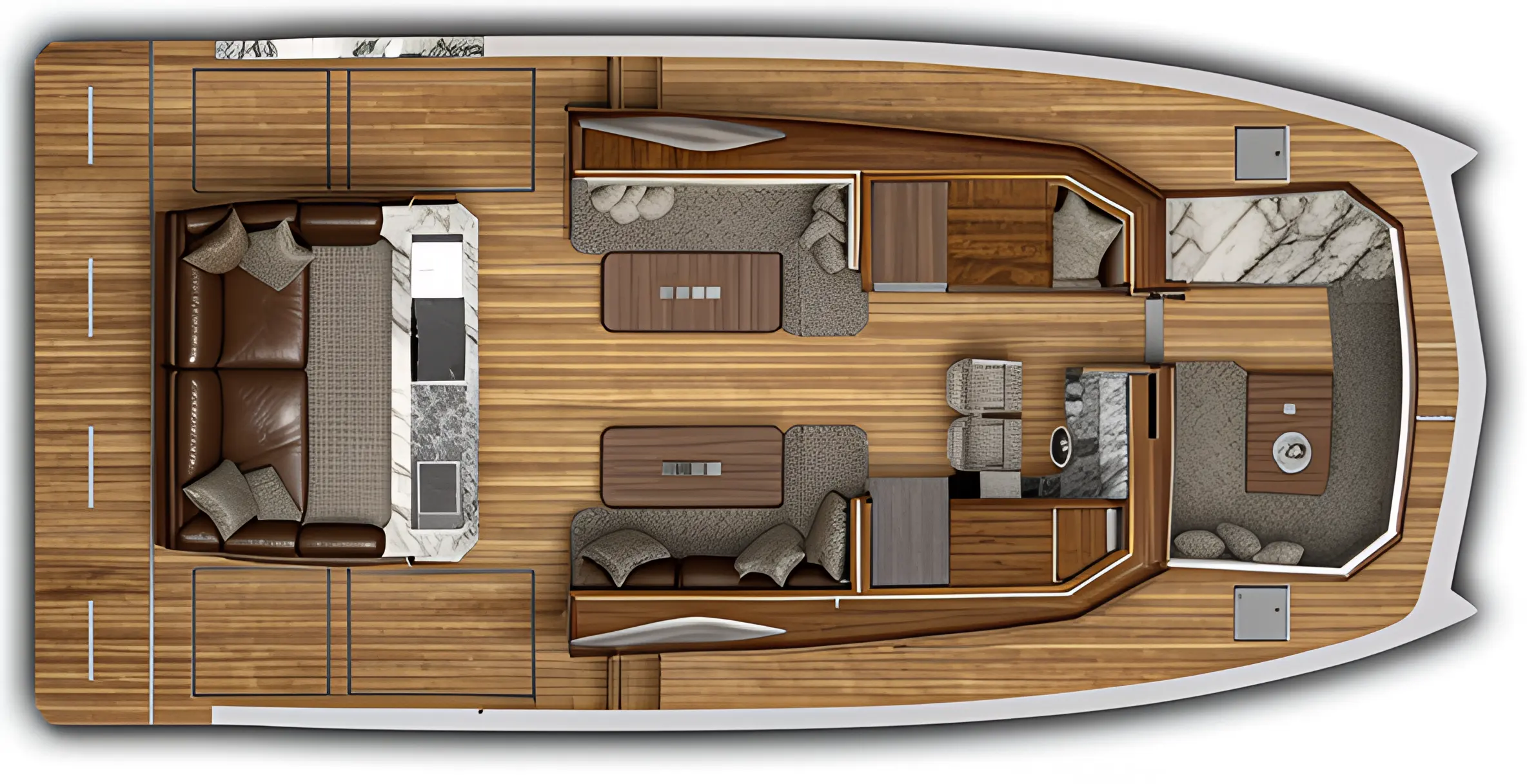 • Extended Cruising: Large-capacity tanks mean you can stay out longer. With 1100 litres of fuel and 400 litres of fresh water, your horizon is virtually limitless.