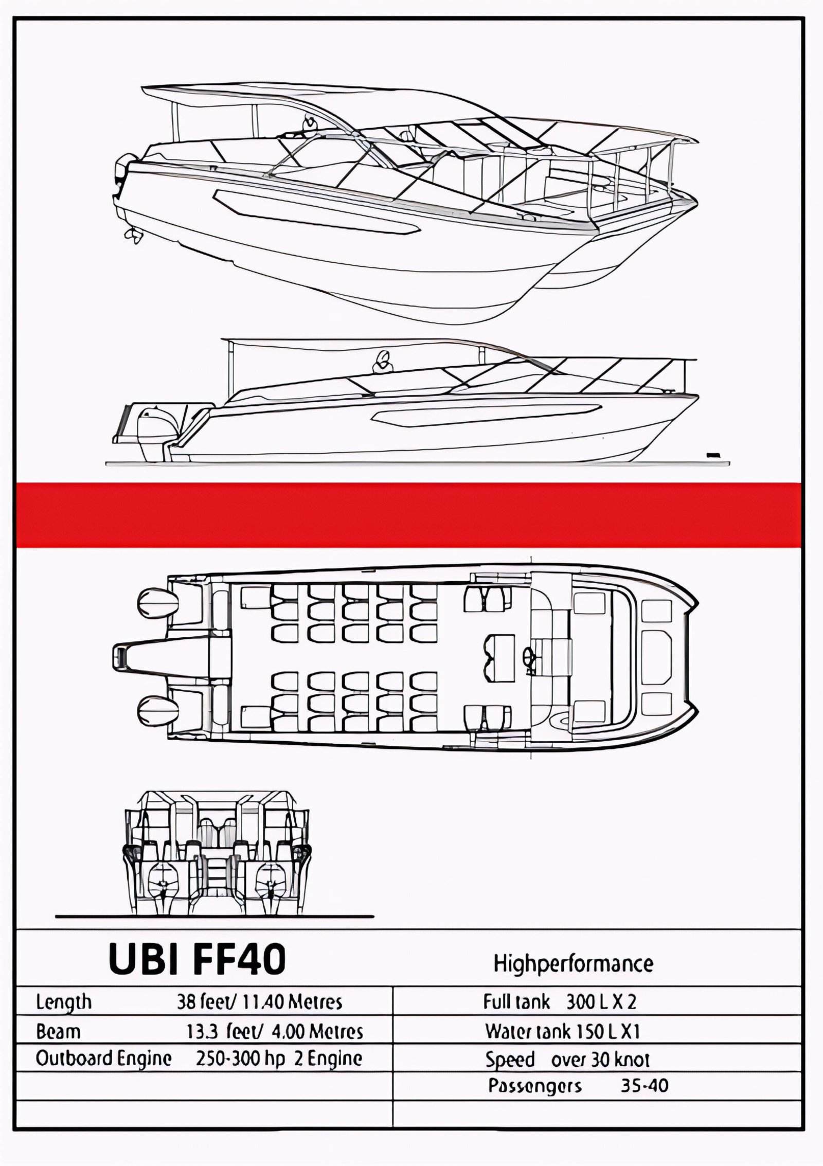 Be the first to review “UBI 11640 customized 40-Passenger Aluminum Cruising Yacht 11.6m Outboard Engine 250HP 30-35 Knots for Transport & Leisure”