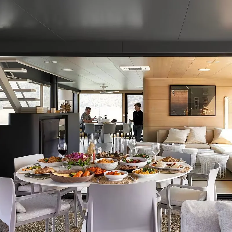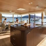 Composite teak decking throughout main deck and rear platform, delivering authentic aesthetics with minimal maintenance requirements and superior slip resistance.