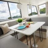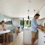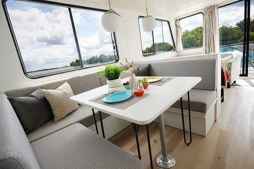 highlighted on h2ogetaways.ca.LayoutSleeps 6: 1x Queen cabin, 1x Queen loft, 1x Convertible dinette to Queen. 1 Bathroom (shower,