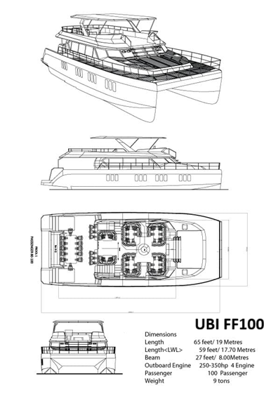 The UBI 18100 is a purpose-designed transportation ferry primarily for short haul routes. With a passenger capacity of up to 100 depending on layout and seating arrangements, it offers a very viable alternative for the operator wishing to move multiple guests at speed, in comfort and economically.